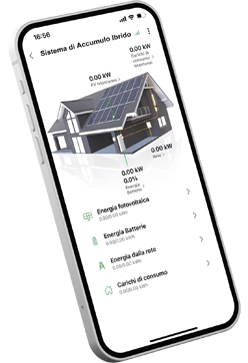 • Controllo produzione e utilizzo dell'energia solare; verifica stato dell’alimentazione di rete e livelli di carica della batteria